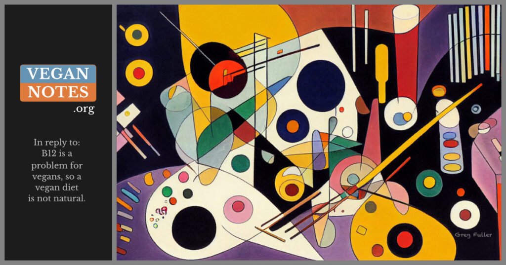 The notes on this page show that any inference about the naturalness of a vegan diet based on the need for B12 supplementation is both irrelevant and fallacious.